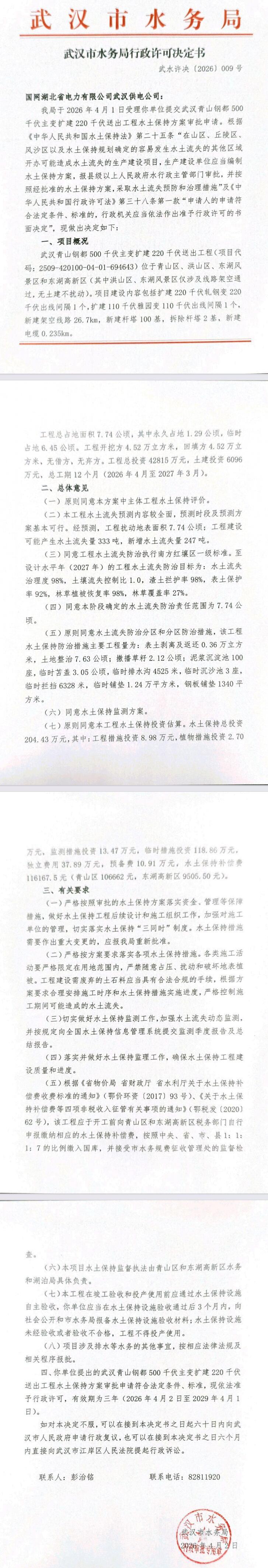 国网湖北省电力有限公司武汉供电公司武水许决〔2026〕第009号