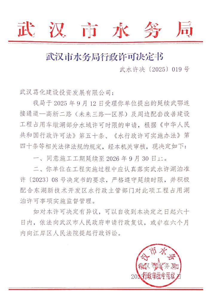 武汉葛化建设投资发展有限公司行政许可决定书 武水许决〔2025〕第019号