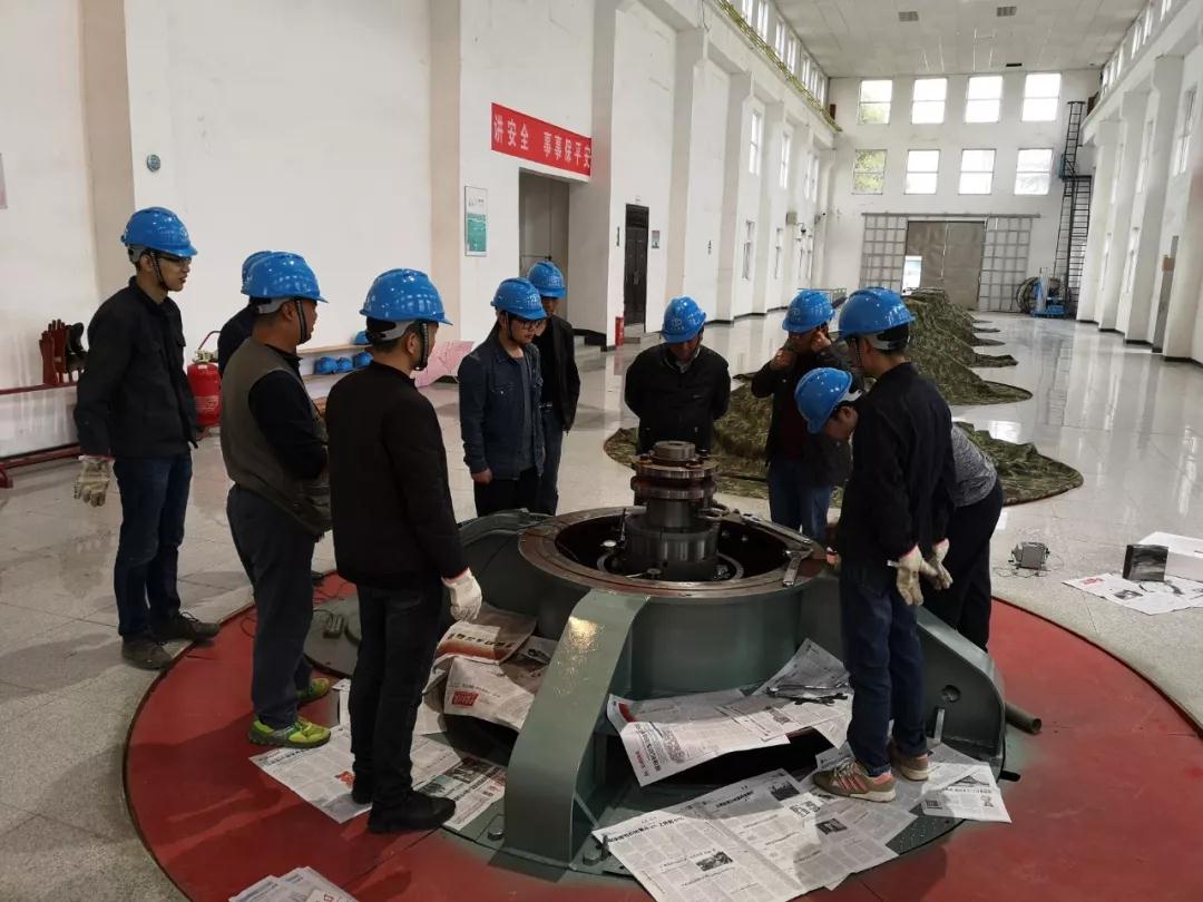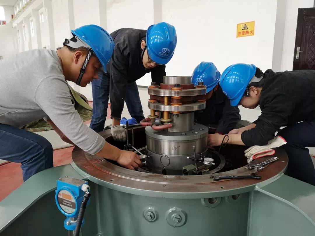 王师傅详细讲解了电机构造、易损件安装流程,大家用心听、细心记、齐上手,用百分表测摆度,用千分尺测气隙,更换主电机轴瓦,所有步骤稳步有序。