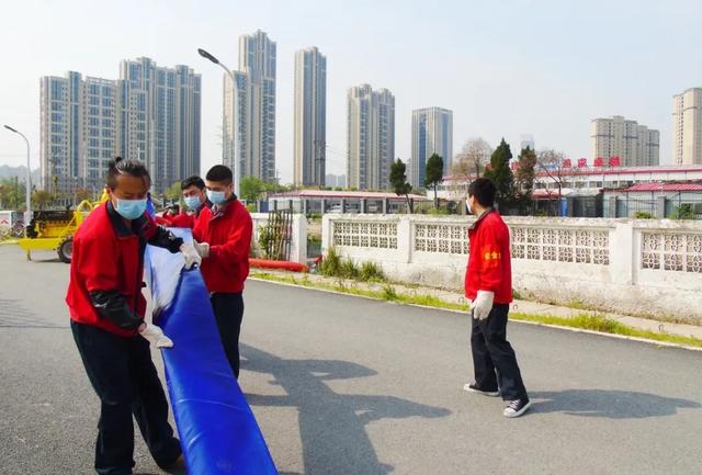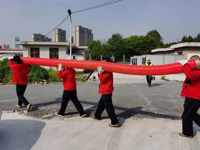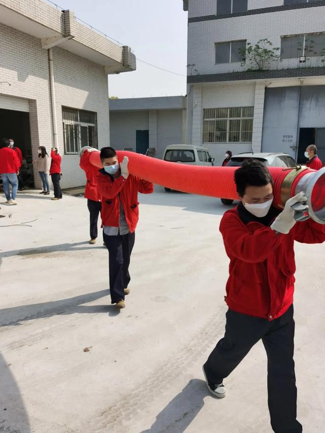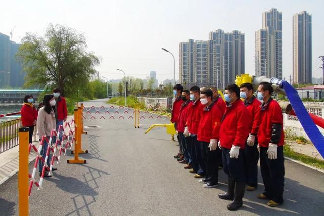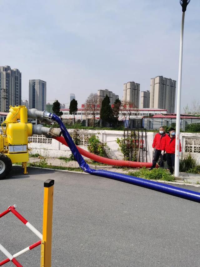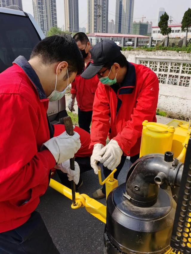 ▲ 按照工作预案,队员各司其职、通力合作,有序设置防护围栏及警示标牌,迅速转移流动泵车。