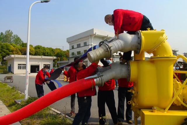 ▲ 泵车平稳运行十几分钟后,进行停机操作,抢险队员迅速拆分流动泵车和管道,清理现场设备工具,有序撤离,整理设备安全入库,演练顺利结束。