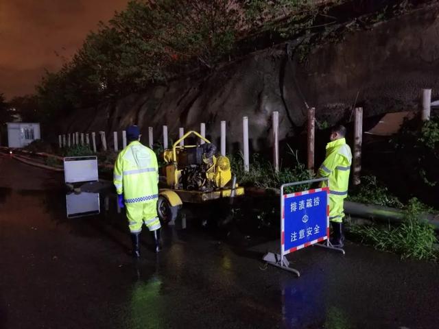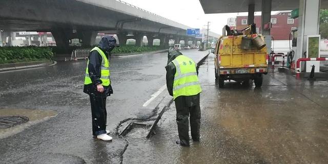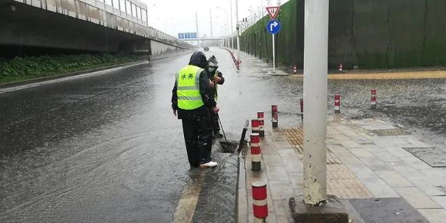 △ 建一路正常无渍水,水务人雨中值守