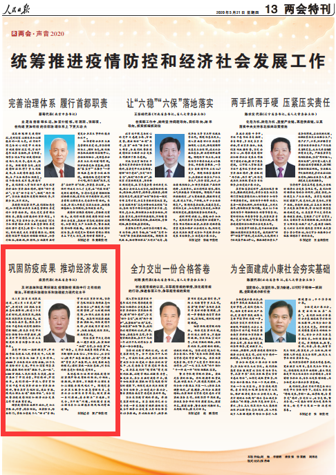 应勇“声音”亮相人民日报:巩固防疫成果 推动经济发展