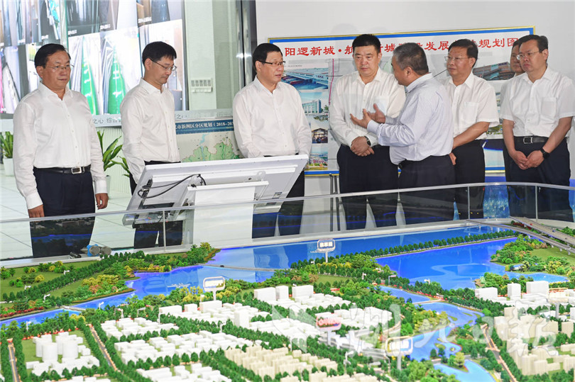 位于新洲阳逻开发区的“阳逻之心”新城,正加快推进基础设施建设。应勇首先来到这里,听取阳逻新城、航天新城建设发展总体规划介绍,察看新城规划沙盘,了解区域经济社会发展基本情况。应勇指出,城市新区建设要找准定位,坚持规划先行,谋定而后动。规划要有大局观、整体观,统筹谋划新城与老城、沿江与腹地、江南与江北、相邻区域之间的发展定位,系统考虑各规划间的层级、衔接关系,实现协调发展,形成整体合力。要坚持以人为本做规划,以人民群众满不满意为重要评判标准。要保持规划的严肃性,一张蓝图干到底。