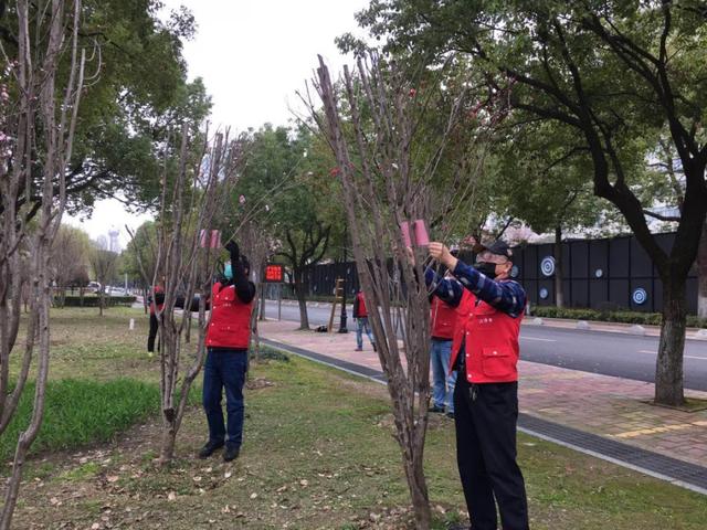 带着收集到的87个领养牌,市江滩办志愿者们前往志愿林,踮起脚、伸长胳膊,努力将最美逆行者的领养牌挂高、挂牢。