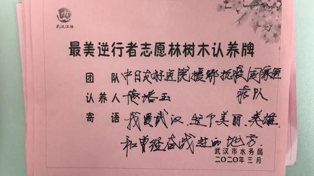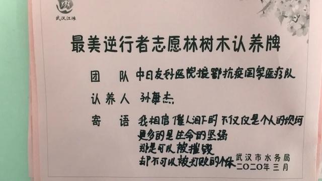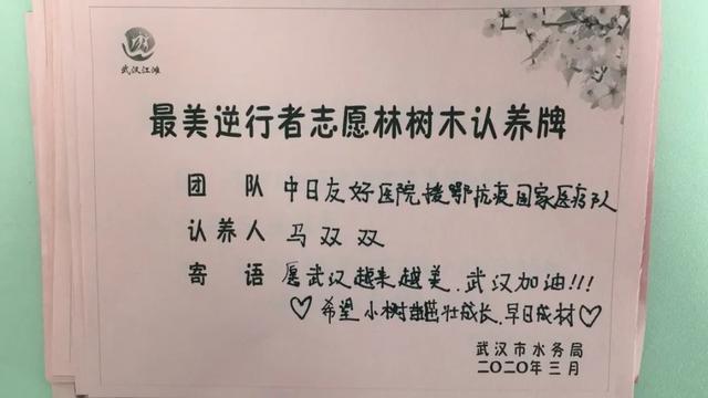 为防止疫情期间人员聚集带来的安全隐患,医护人员在驻地认真填写收到的认养牌,并在认养牌上留下姓名和催人泪下的美好寄语,再由市江滩办工作人员统一收集、挂进“桃花源”。