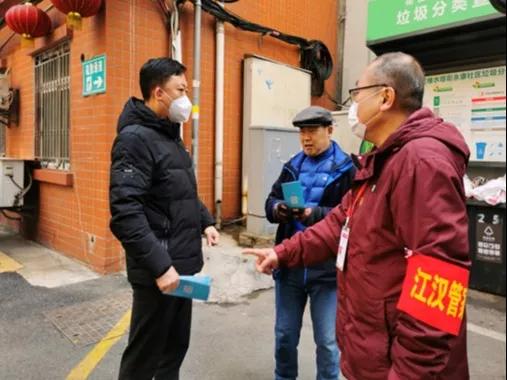 △ 江岸区水务和湖泊局协助社区工作人员做好居民登记工作,维持社区秩序