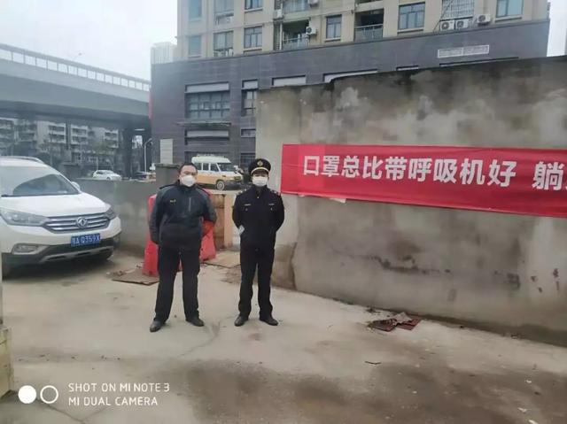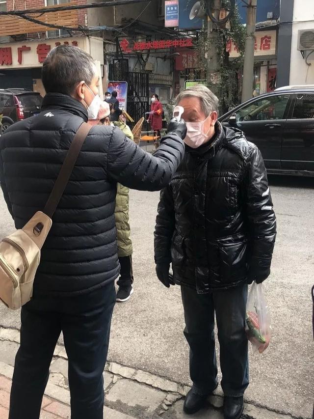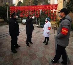 △ 江汉区水务和湖泊局在重点路段设点值守,对楼栋居民做好体温监测管理