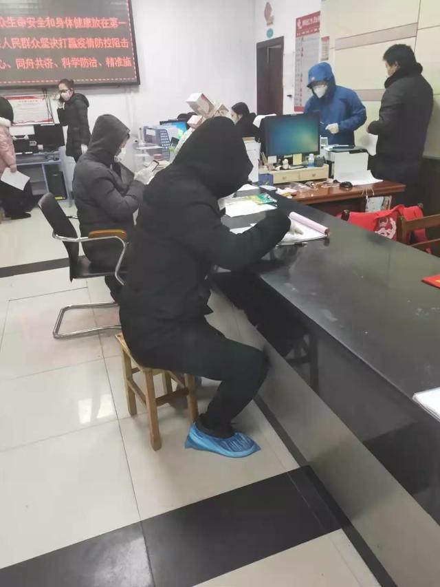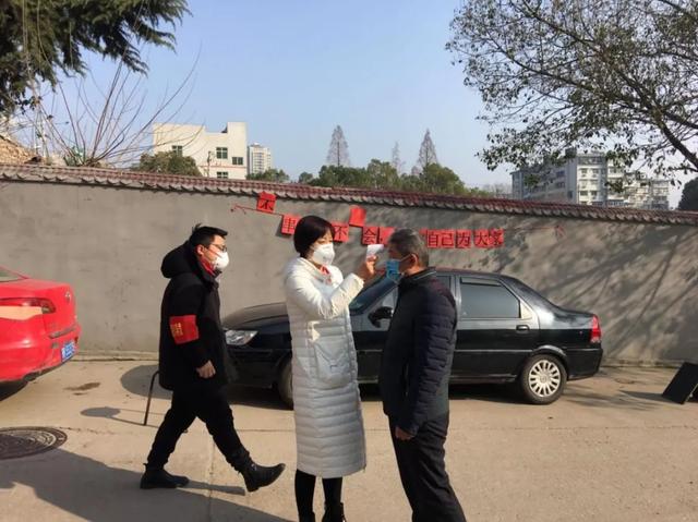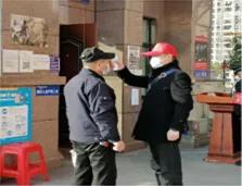 △ 市泵站管理处协助帮扶社区为居民测量体温,电话询问居民家庭有无发热症状等