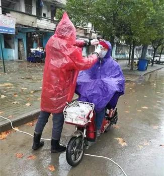 △ 武昌区水务和湖泊局为进出人员测量体温