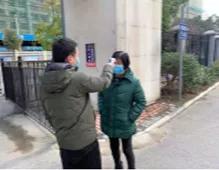 △ 市收费处(质监站)在社区大门设立值班点,为进出人员测量体温