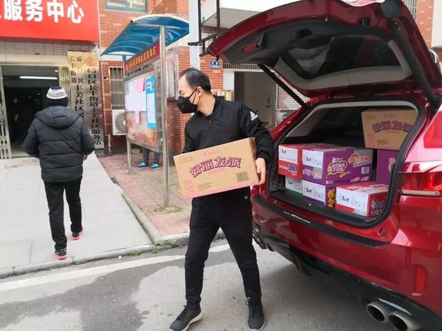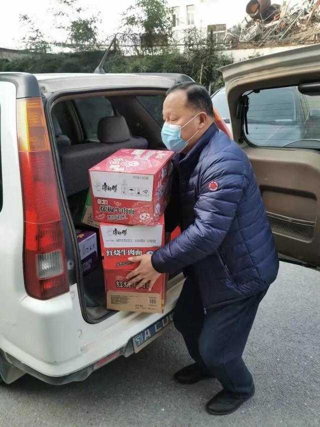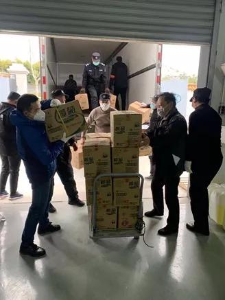 △ 市汤逊湖泵站管理处为社区送上84消毒水、口罩、方便面等物资