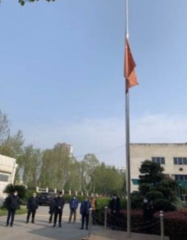 日月同天,山川共悲。4月4日上午,市泵站处各基层党支部隆重举行升国旗、降半旗仪式和哀悼活动,向在抗击新冠肺炎疫情斗争中牺牲的烈士和逝世的同胞表达崇高敬意和无限哀思。处领导及处机关干部职工利用微信群,转发悼念文章,寄托哀思。新生路排水站、罗家路排水站、杨泗港排水站等基层党支部组织当日值守人员在国旗下,为抗击新冠肺炎疫情斗争中牺牲的烈士和逝世同胞默哀三分钟。常青排水站将站内电子显示屏打出悼念标语,缅怀逝者。全处干部职工自发在网络上用不同方式表达了对逆行英雄及逝世同胞的哀思。