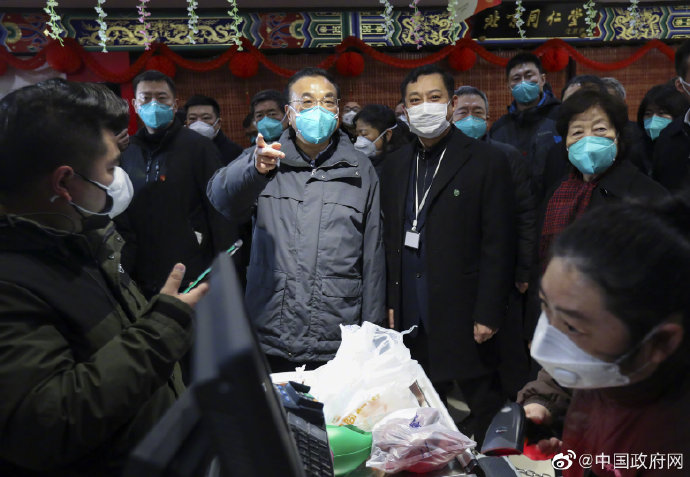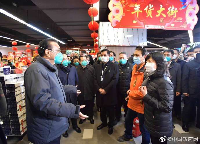 李克强1月27日来到武汉市武商超市,考察市场供应和物价情况。总理先后来到蔬菜区、消毒液和口罩等货架处,了解供应是否有保障,价格是否有波动,来这里采购是否方便等。李克强说,国家各方面资源充足,进入武汉的绿色通道也是畅通的,一定能保障武汉市场供应充足、价格稳定,对恶意哄抬物价等不法行为要依法严肃查处。