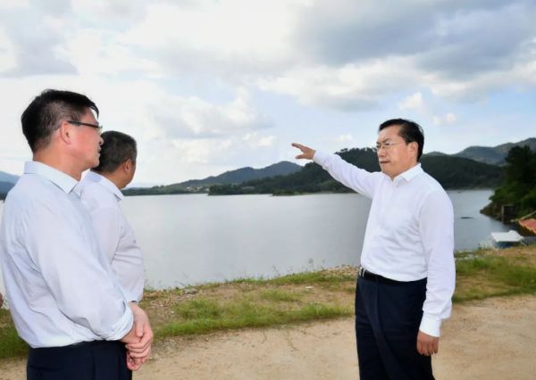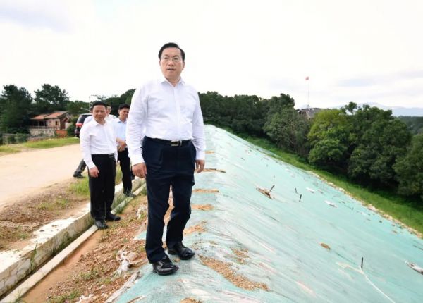 7月8日下午,湖北省委常委、武汉市委书记王忠林赴黄陂区检查水库防汛工作。