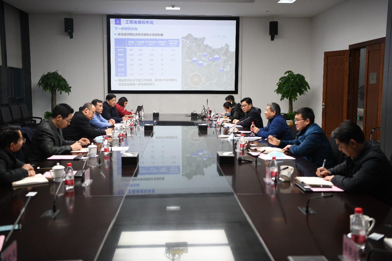 对接交流会上,市水科院详细介绍了武汉市“双水源”供水方案研究初步成果,长江勘测规划设计研究院作了补充汇报。