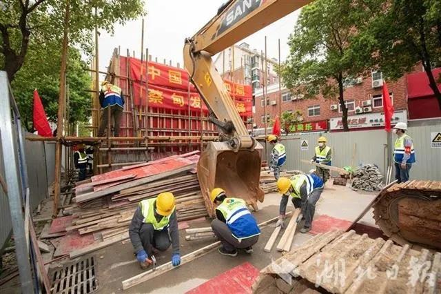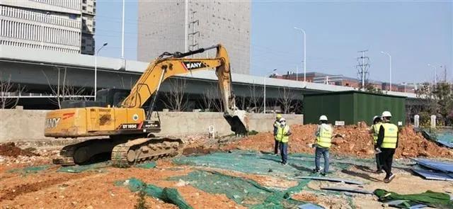 △ 3月20日,武汉东湖高新区光谷大道金融港二路路口,一台挖掘机进场开挖,工人们有条不紊作业