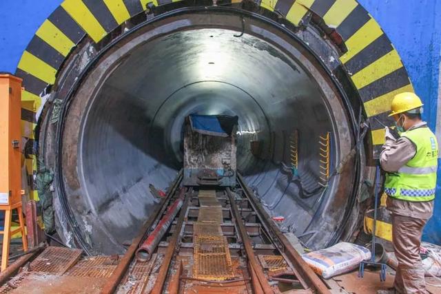 △ 武汉大东湖深隧项目工人指挥隧道运输车作业