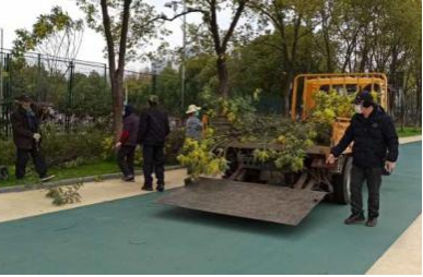 排查安全隐患。江滩绿化人员每天对园区树木状况进行检查,及时清理断枝残叶,将隐患消除在萌芽状态。3月1日,工作人员现场检查时发现汉口江滩三期足球场外的一棵合欢树受前期雨雪和大风天气影响,树干开裂、内部腐朽,存在安全隐患。为避免树枝断裂砸伤行人,绿化人员讨论处理方案后,立即组织人员将其分段锯除。因绿化人员年龄普遍偏大,江滩三期值守人员和保洁人员主动协助、一齐上阵,仅用2个多小时就完成了锯枝和转运工作。