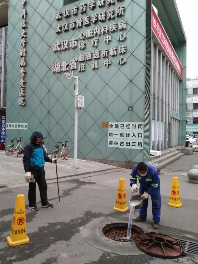 硚口区水务和湖泊局排水队每天对武汉体育馆方舱医院,同济医院、利济医院等定点医院,维也纳酒店(汉西三路店)、宜尚酒店等集中隔离观察点,汉正瑞鑫酒店、梅园宾馆等医护人员休息点及21处农贸、生鲜市场周边下水口进行全面消毒。同时,加强巡视排查力度,全力确保辖区排水通畅。