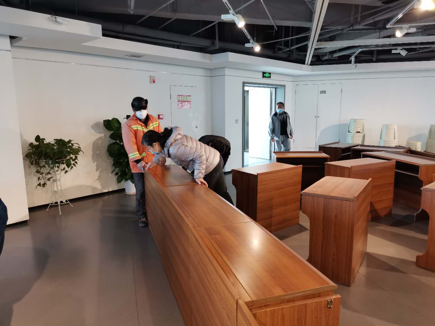 集中调配资源保障办公条件。指挥部需布置可供90多人使用的办公环境。江滩办不等不靠,想方设法调配资源,解决办公家具等难题。利用现有设施资源,集中调配江滩会议中心、三阳路中控会议室及职工食堂的桌椅97套,调用多台电瓶车分车转运到博物馆,现场重新组装摆放,合理布局,保证整齐通风开敞。优化办公条件,利用库存物资,安装日光灯管50套解决功能照明不足,为每组办公单元配备接电插座保障办公用电,每层楼配备保温水壶、一次性水杯等用品。
