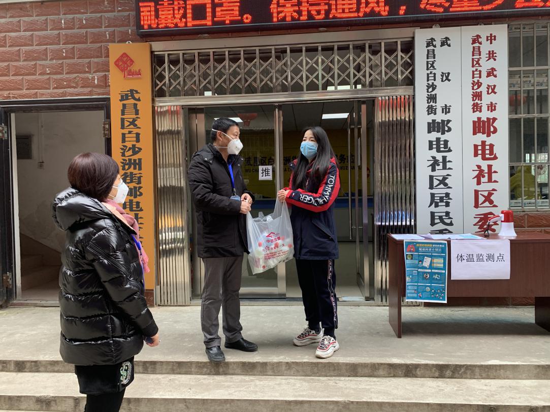 1月28日下午,局属单位水资源管理服务中心工作人员对接邮电社区并发放防护物资。