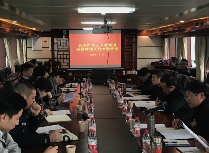 市水务执法总队通报了近期长江下游交界水域巡查暗访情况,参会各区汇报了近期打击非法采砂工作,市公安局水上公安分局、长航公安武汉分局、武汉海事局分别通报了本单位查处违法行为工作情况和相关案件信息,并对下一步加强下游水域打击非法采砂工作提出了针对性的建议。会议指出我市长江下游交界水域违法涉砂行为时有反弹,给全市打击非法采砂工作带来了考验,务必要引起各有关区和职能部门的高度重视,务必采取强有力措施迅速遏制反弹势头。参会各单位研究讨论了市水务执法总队制订的下游水域联合执法工作方案,会议决定,从2019年11月25日起,采取水务与公安、海事部门联动、区域联防值巡与辖区自主执法相结合的方式,对二七长江大桥下游水域开展为期三个月的专项联合执法行动,从严、从重、从快打击下游水域出现的违法涉砂行为,确保武汉水域采砂管理工作安全。