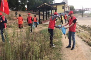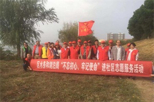 10月12日,新洲区水务和湖泊局组织全局志愿者联合结对共建邾城街章南社区志愿者开展“不忘初心、牢记使命”志愿者服务活动。下午三点,新洲区水务和湖泊局30余名志愿者赶赴举水橡胶坝开展志愿服务活动。