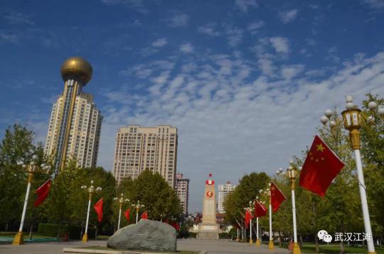 为庆祝新中国成立七十周年,武汉市的主干道、商场、公园等人流密集区域都挂起了鲜艳的五星红旗,武汉江滩也不例外。汉口江滩、武昌江滩、汉阳江滩的主要闸口和广场,国旗迎风招展。