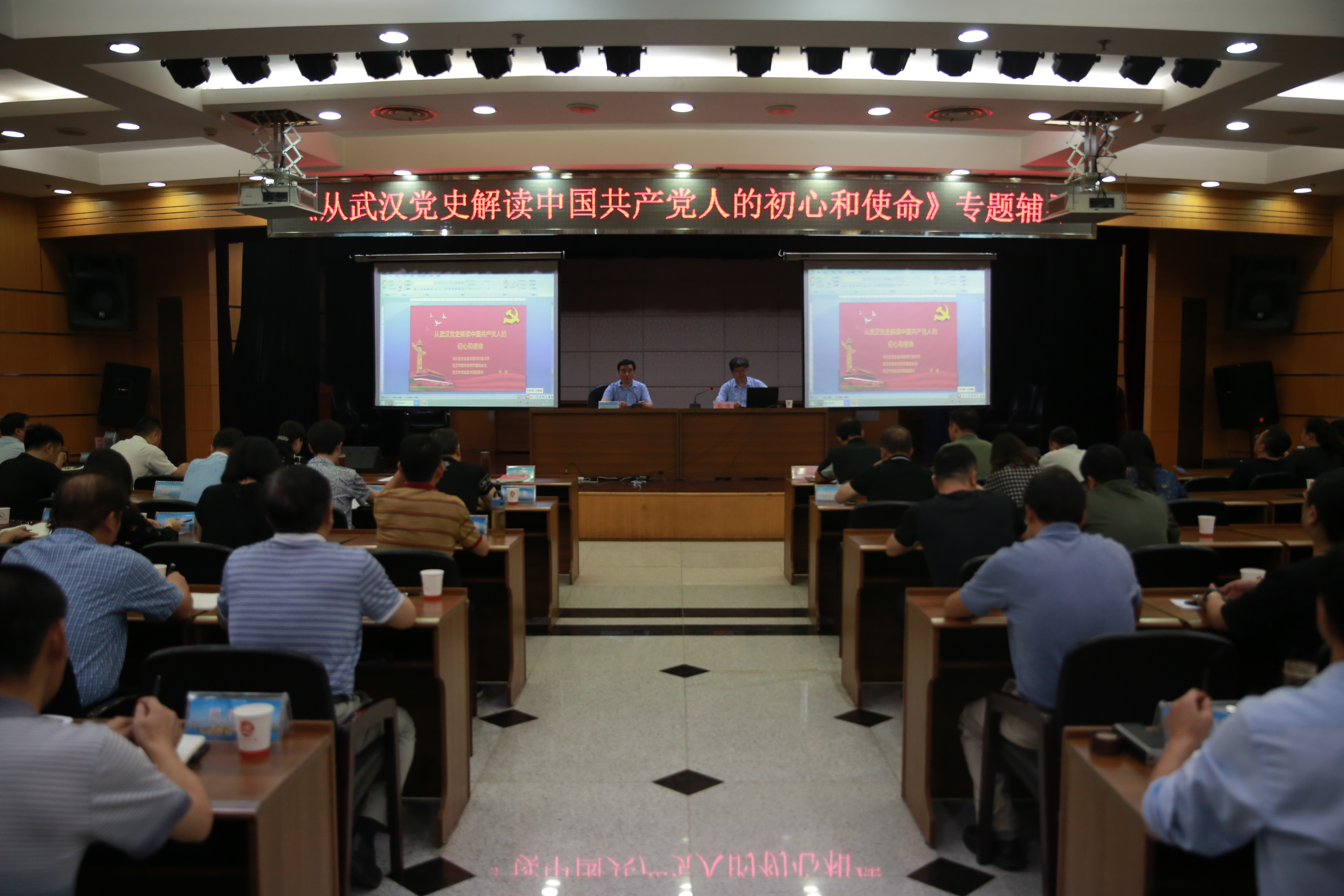 辅导报告由省委宣讲团特约宣讲员、武汉党史研究室副主任、武汉党史宣讲团团长宋健主讲。宋主任以《从武汉党史解读中国共产党人的初心和使命》为题,从中国共产党建党时期、大革命时期、土地革命时期三个不同的历史阶段,系统讲述了党领导中国革命的重要策源地和进行革命斗争的重要区域武汉,涌现出来的重要人物与重大事件。报告史料客观详实、人物形象鲜明生动,多角度立体化展示了中国共产党人在不同历史时期对初心的坚守和对使命的传承。