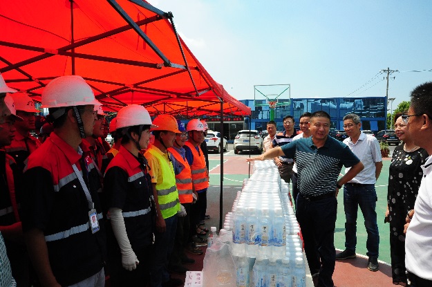 连日来,武汉地区持续高温,为切实做好高温天气水务职工防暑降温和劳动保护工作,局党组成员分赴各重点项目施工现场、局属单位开展 “送清凉”慰问活动,并开展高温天气安全检查。局工会、建设和安全监督处及相关处室负责人陪同。