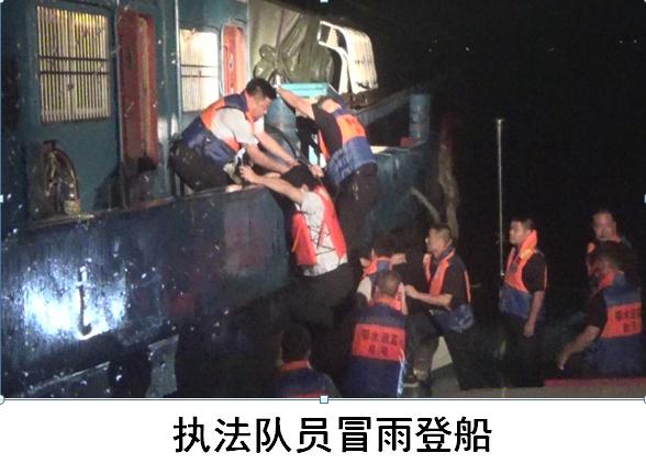全市水务部门积极落实市委市政府长江大保护举措,坚持高压严打,竭力打造武汉“非采禁区”,全面加强全流域暗访巡查。经过一周连续盯防,发现在我市下游边界江段间或有非法采砂行为发生,在新洲区长江干堤堤段有盯梢人员通风报信,附近江面有3艘冲锋舟巡弋,非法偷采作业时间约为晚23时至次日凌晨1时。为实施精准打击、确保行动取得圆满成功,市水务执法总队杨卫国副总队长强调:行动方案要想细做全,组织实施严密精细,特别是要做好反“侦察”措施,确保行动万无一失。6月11目晚21时,市总队会同局堤防和采砂处、水上公安行动负责人对行动方案进一步进行商议,决定采取“混合编组、单艇出动、隐蔽机动、快速出击”的行动方式,直扑偷采水域。根据行动方案,执法艇关掉所有照明灯具,舱室拉上窗帘,关闭航行设备后,22时许起航下行。23时30分,经仔细查找、反复比较,执法艇在阳逻大桥附近水域挂靠到一艘大吨位货船隐蔽随行至事发水域。期间,成功规避2艘盯梢的冲锋舟。12日凌晨1时许,在长江武汉段下游边界江段发现一艘隐形采砂船和一艘运砂船正在实施偷采作业,两艘违法涉砂船只均为近万吨级。执法艇迅速接近非法采砂船只,强行突击登船。执法艇靠近过程中,两艘违法船只突然加速逃逸,执法艇鸣响警报、进行喊话,执法艇强行贴靠,执法人员冒险登上运砂船;由于天降大雨,隐形采砂船吨位大、船体高,执法人员无法在航行中强行登船,隐形采砂船不听劝告继续逃逸,经公安干警5次鸣枪示警后,非法采砂船当事人弃船不顾、跳船逃逸。经紧急调度船舶机、驾人员后,两艘违法涉砂船只于凌晨5时45分扣押至新洲区涉砂船只集中停靠点。