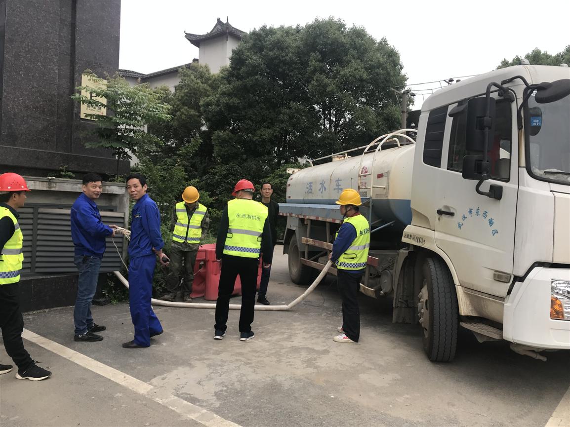 本次演练以军运会配套酒店供水应急保障工作为重点,模拟军运会期间酒店突发停水,应急保障人员迅速组织,安排洒水车及时进场为酒店补水供水。演练共进行40分钟,参加演练人员近20人,参演洒水车2台。
