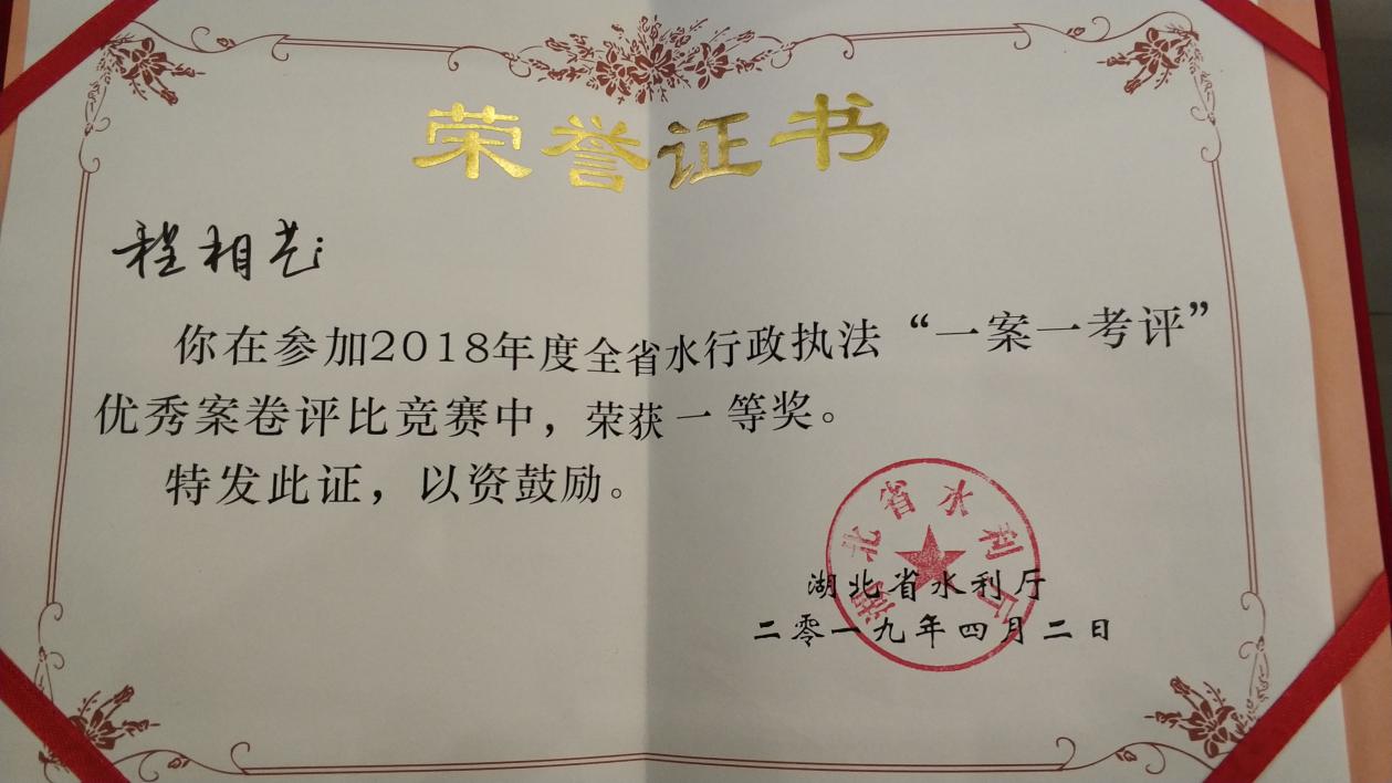 武昌区水务和湖泊局程相艺荣获“全省水行政执法优秀案卷评比竞赛”活动一等奖
