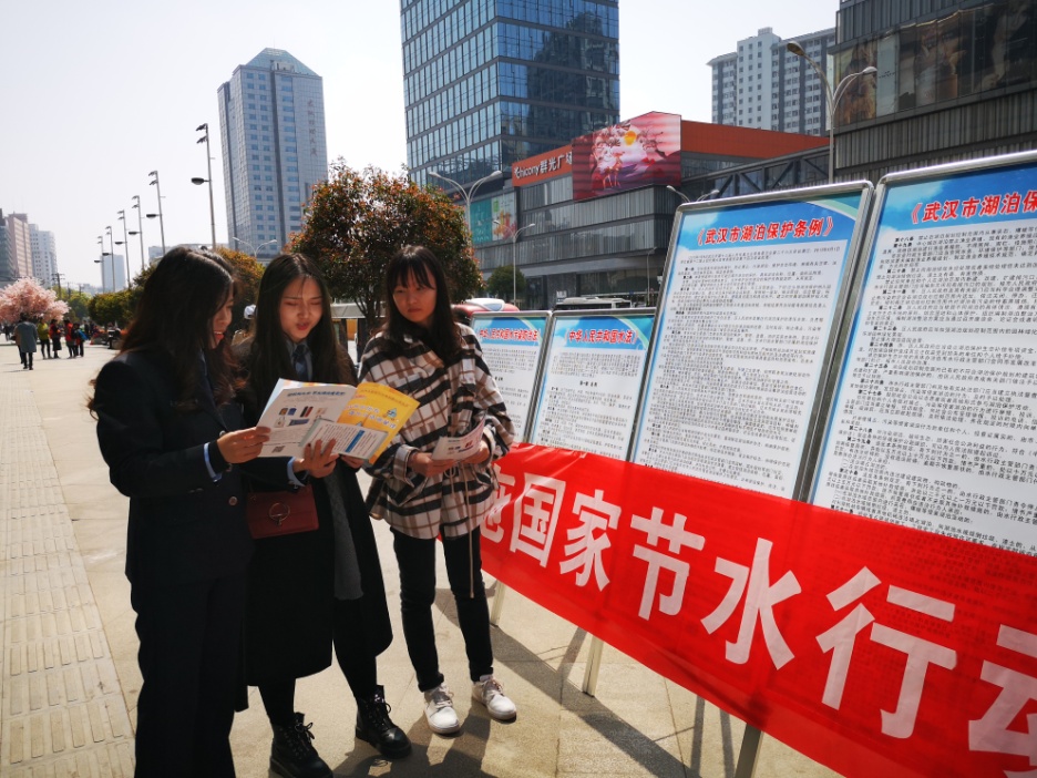 2019年3月22日是第二十七届“世界水日”,3月22-28日是第三十二届“中国水周”。2019年“中国水周”,洪山区水务和湖泊局联合湖北工业大学护湖(河)志愿服务队共同开展宣传活动。3月24日上午,湖北工业大学护湖(河)志愿服务队在湖北工业大学校内开展宣传,发放由区水务和湖泊局准备的宣传手册,下午志愿者们到巡司河开展巡河、护河行动。3月25日,洪山区水务和湖泊局联合湖北工业大学护湖(河)志愿服务队在洪山区创意城开展“坚持节水优先,强化水资源管理”的宣传活动。