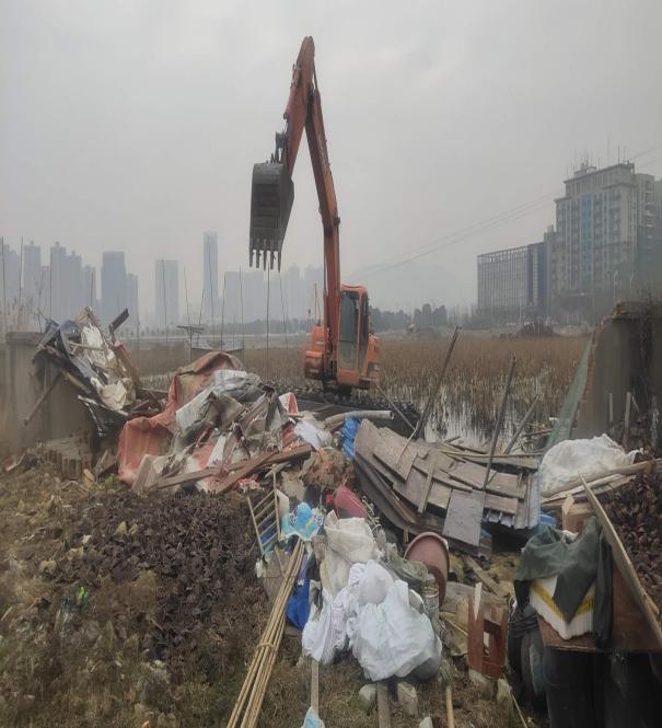 1月25日上午,江夏区水务局联合江夏经济开发区、大桥现代产业园、大桥派出所、城管中队、司法所有关力量,到汤逊湖畔开展了一次以“除存量、拆违建、促整治”为目的的“清四乱”专项行动。