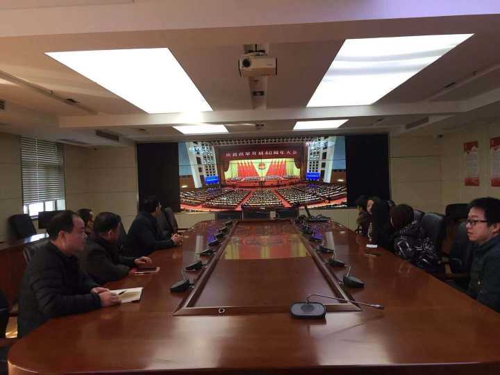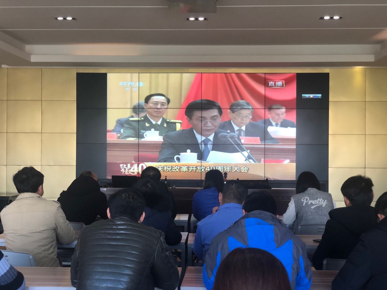 12月18日上午,江滩办党委组织70名江滩党员和中层管理人员观看了改革开放40周年大会的现场直播。