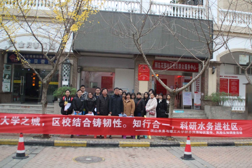 为了解武汉市社区居民洪涝灾害风险认知现状,提高居民防灾意识,宣传普及城市排水防涝知识及排水法律法规,洪山区水务局联合武汉理工大学于2018年12月5日至12月13日在丽岛花园、幸福佳苑、板桥社区、北港教师小区、保利心语、南湖雅园等6个社区开展了城市排水防涝知识法规宣讲及居民风险认知调查活动。