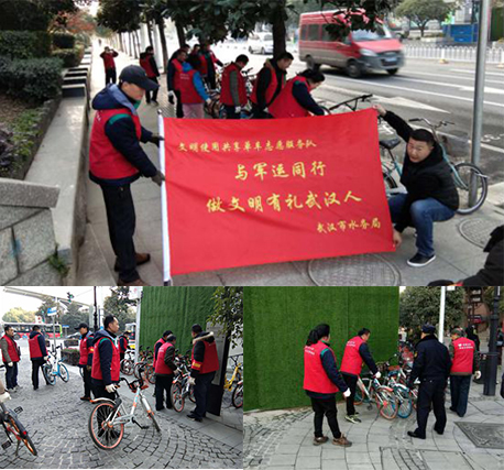 【与军运同行】武汉江滩办开展“让共享单车‘归位’”志愿活动