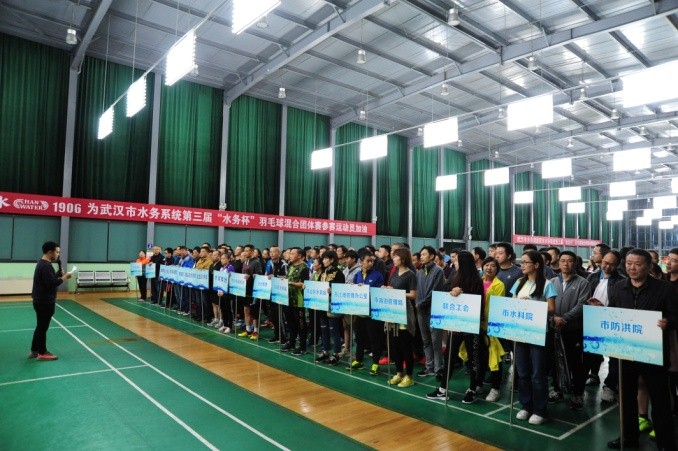 10月20日-21日,由市水务局工会主办的武汉市水务系统第三届“水务杯”羽毛球混合团体赛在汉口江滩三期羽毛球馆举行。副局长祝杰致开幕词,并带队参加此次比赛。