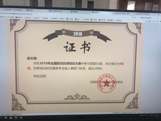 高度的参赛热情、浓厚的学习气氛,展现的是水务人求知好学的态度,在微信群里经常能看到大家晒出的大赛“证书”,防汛抗旱知多少,水务人齐刷刷亮剑来PK。
