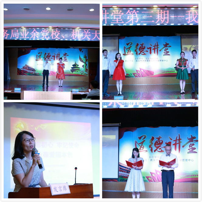 为弘扬中华民族道德力量,践行社会主义核心价值观,8月2日下午,由市水务局主办、市堤建中心承办的“我爱我的祖国”道德讲堂在汉口江滩会议中心举行。局领导、局机关及局属单位干部职工代表120余人参加了活动。