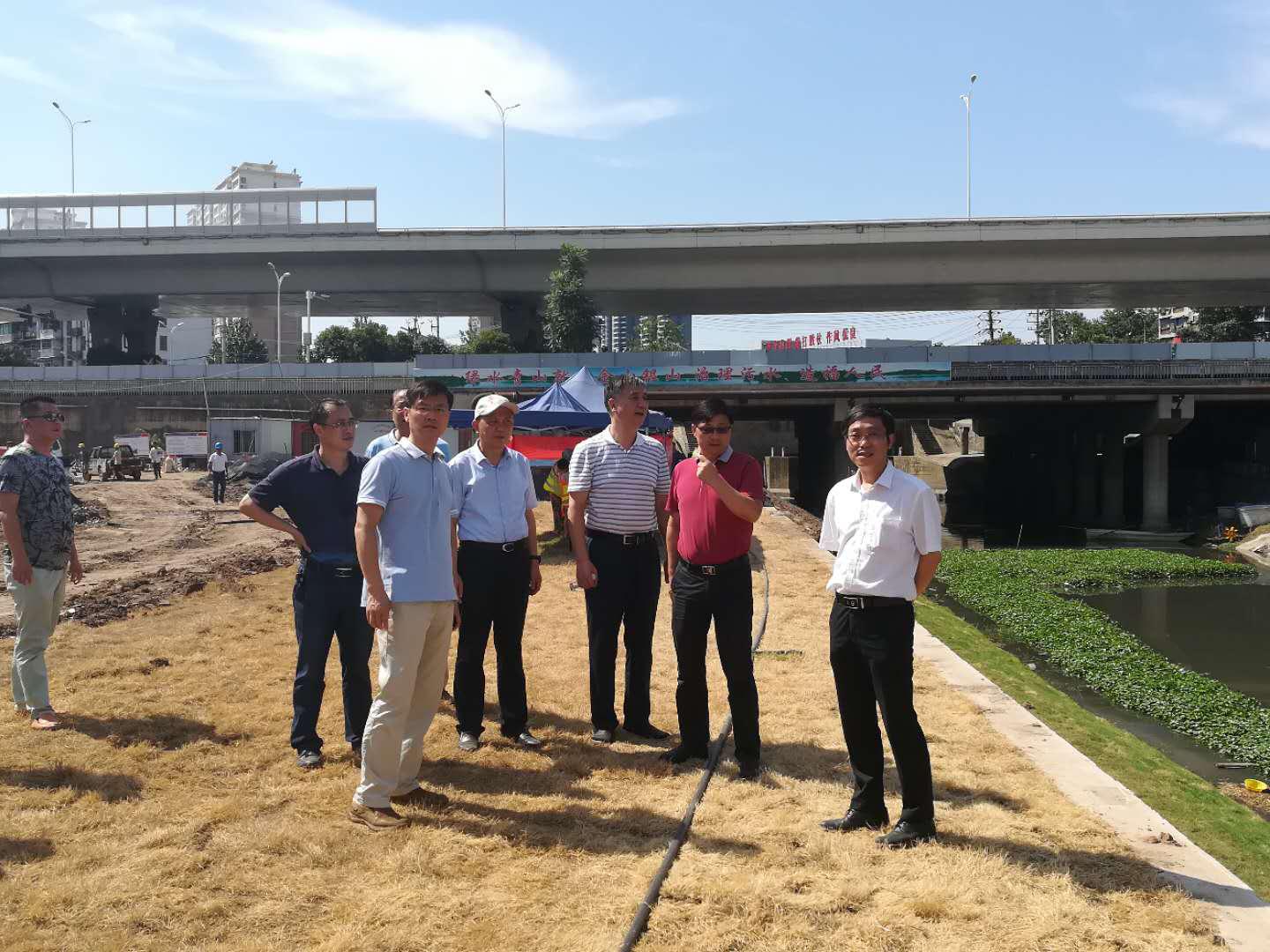 7月26日下午,区委副书记、区长余松到巡司河(武昌段)检查分散式污水处理设施建设情况,副区长王继德、胡剑陪同。