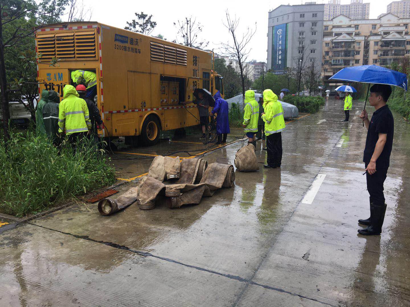 架设泵车紧急排渍