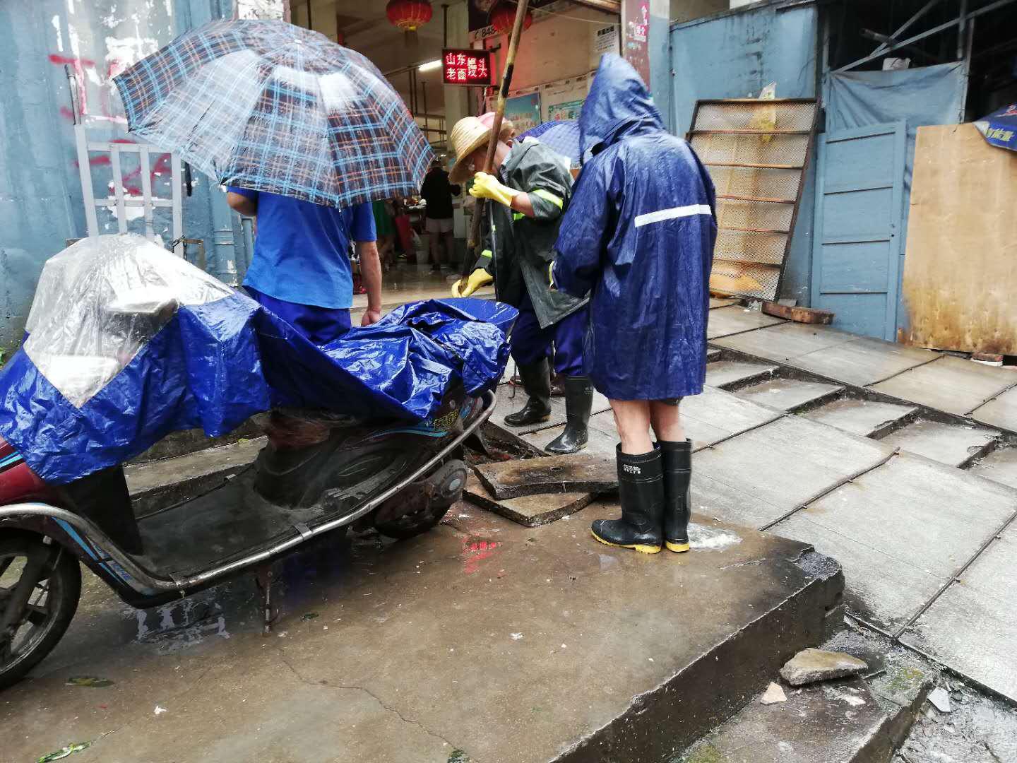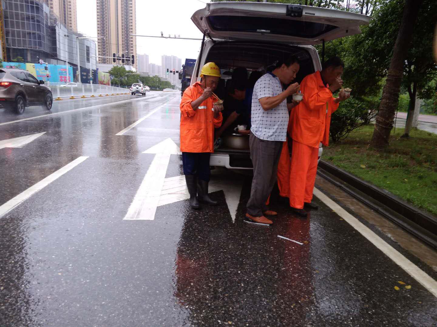 持续坚守15个小时,雨渐停才顾得上吃一口午饭,已是下午4点