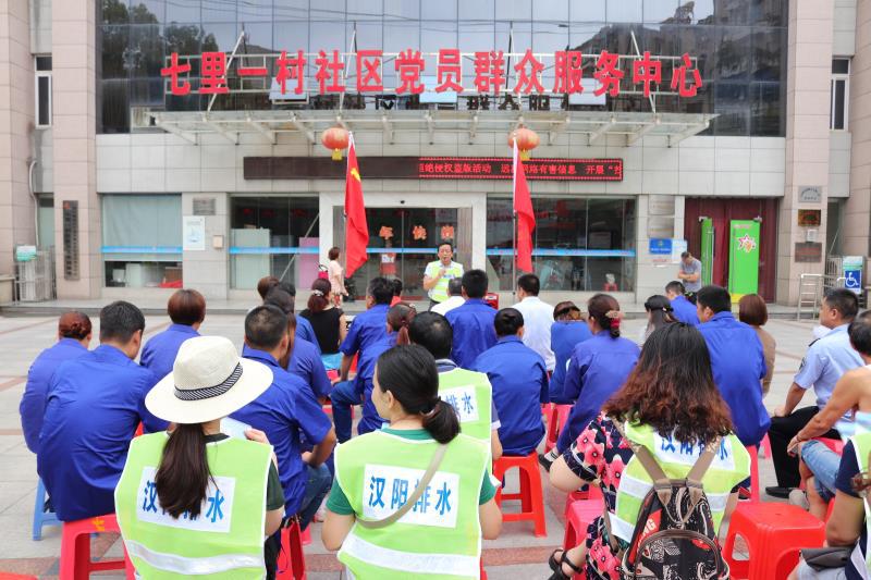 本周,为迎接建党97周年,汉阳区水务局排水队积极开展“惠民服务进社区”活动,在琴断口街七里一村社区广场,60岁的全国劳模、中国好人、全国优秀共产党员金帮红,向社区居民讲解了排水设施的养护知识,协助红色物业小区进行培训,并带领疏捞班组、党员志愿者向社区居民发放“社区长效管理承诺书”,现场为居民排忧解难,为社区解决社区堵水、渍水难题。