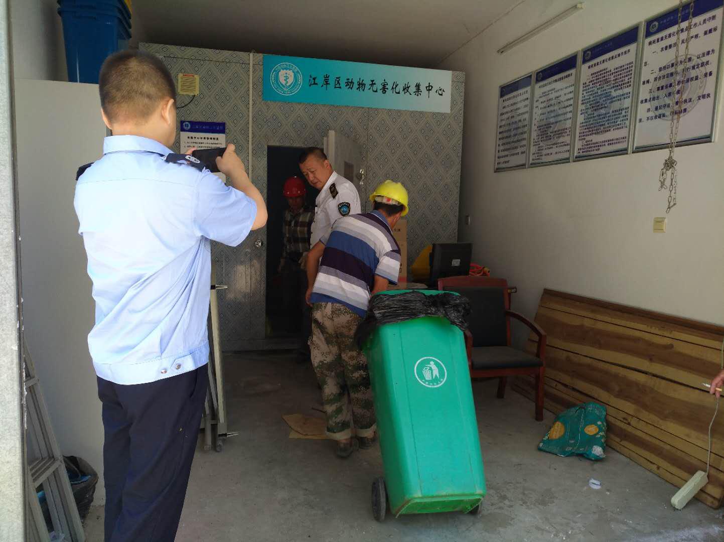 一大早塔子湖东门湖面栈道边气温达到36度,湖岸沿线有死鱼漂浮,江岸区水政监察大队组织了30名人员,3艘船只于东门处集结,整队后分三个小分队,对湖岸沿线漂浮死鱼进行巡查,经过近三小时巡查打捞,2艘船只装载打捞起的死鱼于塔子湖售楼中心处集合,打捞死鱼的人员与保安人员一起将散发恶臭味并引起湖泊水质变坏的死鱼装车转运到区食药监局进行处理。12时许,装载死鱼的车辆抵达位于丹水池街食药监局处,水政大队执法人员顺利与区食药监局人员进行死鱼交接。