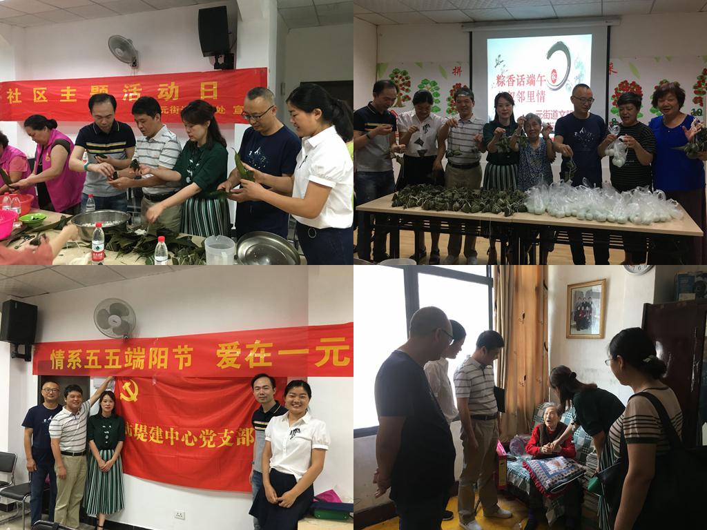 端午节是我国的传统节日之一,为弘扬中华民族的优秀传统文化,充分挖掘端午节的深厚文化内涵,6月14日上午,市堤建中心党支部组织党员志愿者来到洞庭社区开展“我们的节日·端午节”——“粽香传真情 慰问暖人心”主题活动。