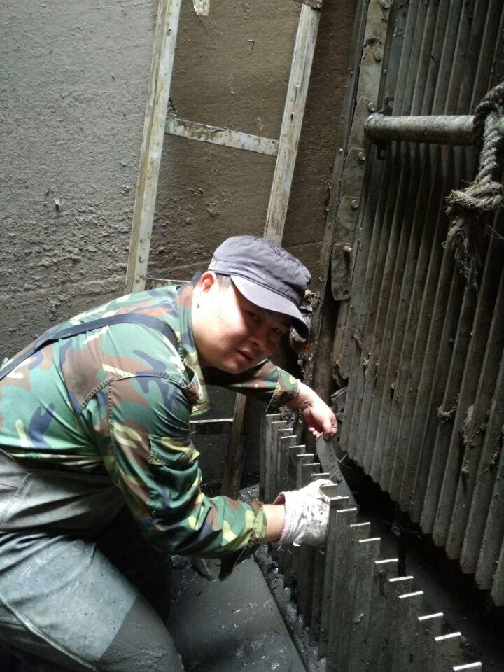5月31日,前期准备工作已就绪,刘斌带领该站技术骨干再次进行格栅机维修工作。刘主任下到前池后,经仔细查看发现格栅机底部链条导轨保护罩内卡入一个小金属轴承,导致格栅机底部9节链条脱轨。查明故障原因后,抢修人员立即对链条进行分解,拆除保护罩,清除杂物,再对链条进行归位、连接。整个抢修工作故障判断准确、制订措施有效、抢修分工明确、实施有条不紊,设备故障迅速得到排除。抢修过程中车间主任刘斌泡在齐膝深的臭淤泥里整整2个半小时,其余抢修人员不怕脏不怕累,技术娴熟,配合默契,充分体现出该站技术骨干的吃苦精神和业务素质,彰显了泵站职工克难攻坚的精神风貌。