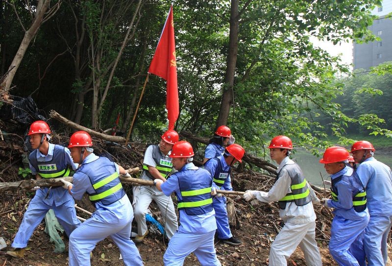 活动现场红旗飘扬,热火朝天,处领导身先士卒,无论是党员、团员,男同志还是女同志,个个争先恐后,干劲十足,构成了一幅全员参与、共同行动的和谐画面。他们有的清理转运枯树干,有的铲除河边淤泥、有的锄草、清拣白色垃圾,每个人都兢兢业业,汗流浃背,用实际行动保护黄孝河沿岸环境。